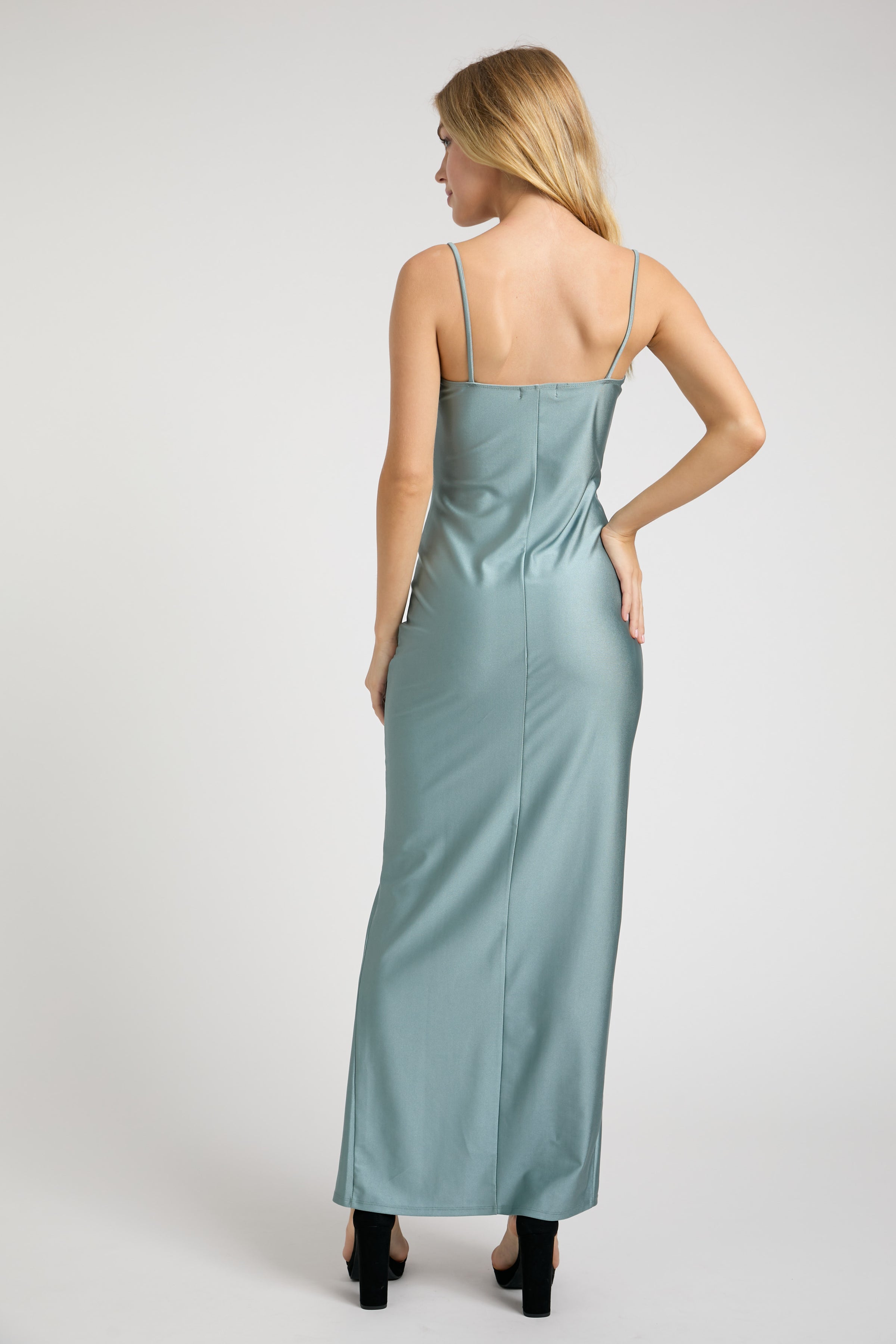 DX9153 | Cowl neck Sleeveless Slit Casino Tricot Maxi Dress
