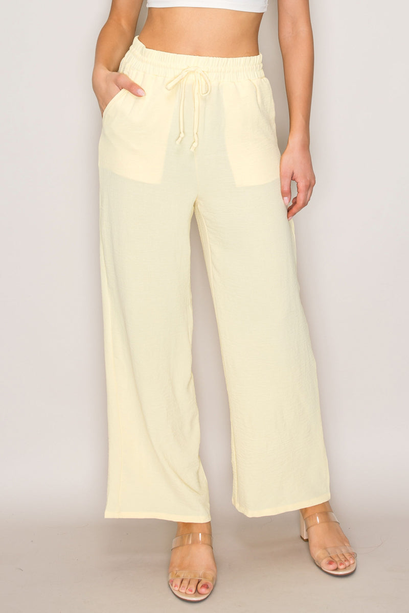 PZ4554 | Woven Wide Leg Pant with Tie & Pocket Detail