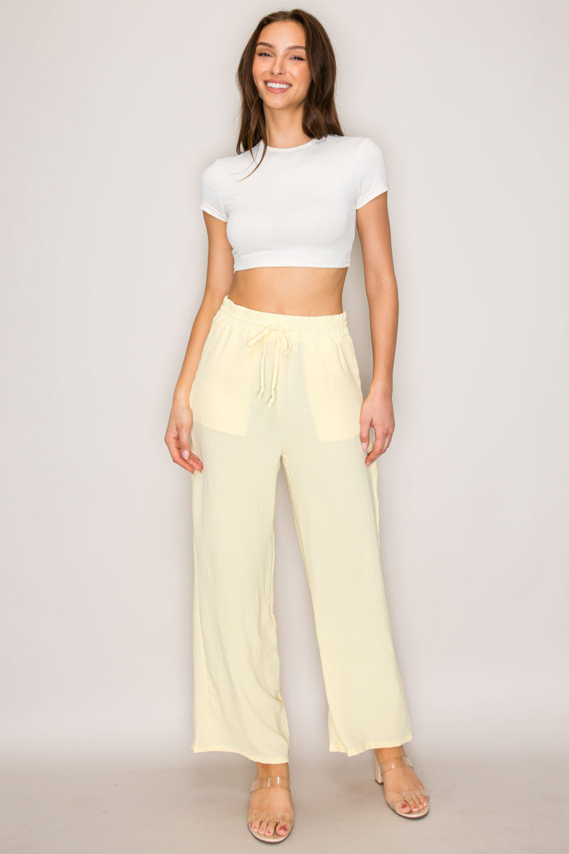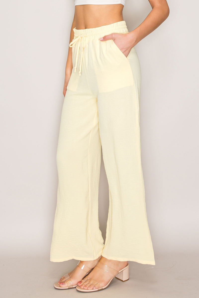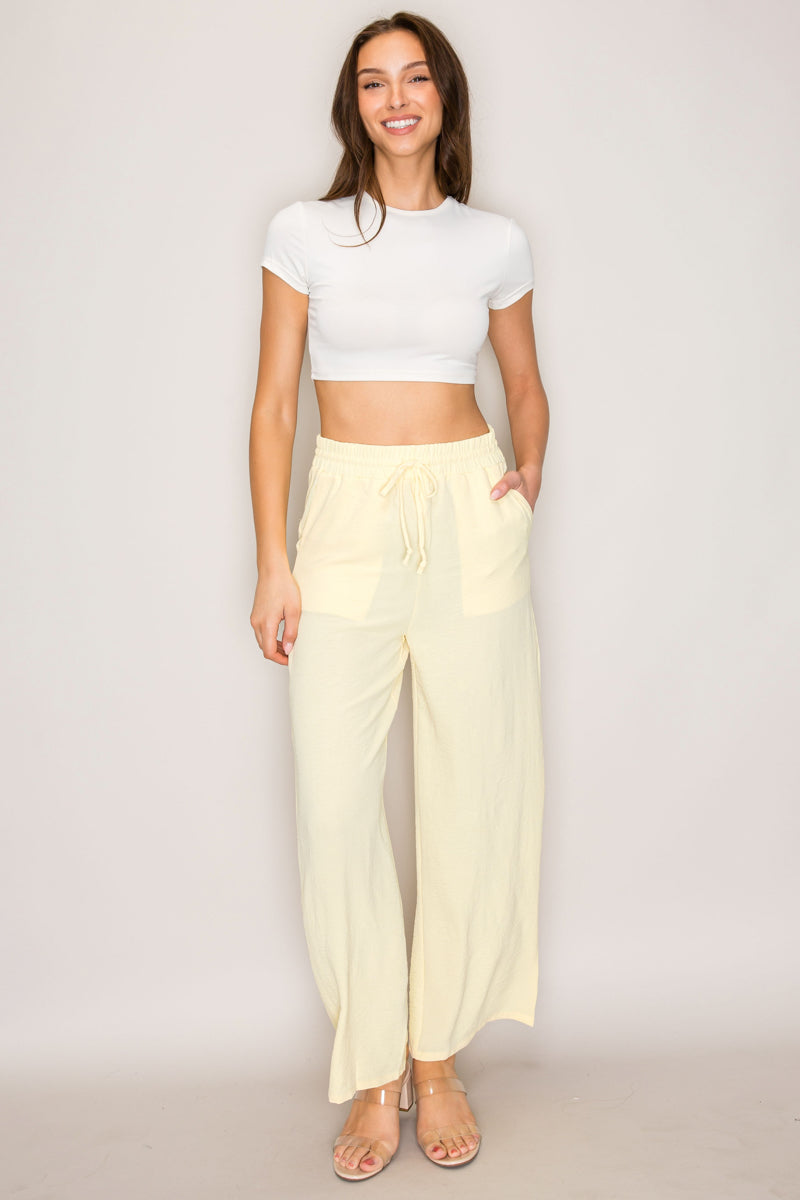 Woven Wide Leg Pant with Tie & Pocket Detail
