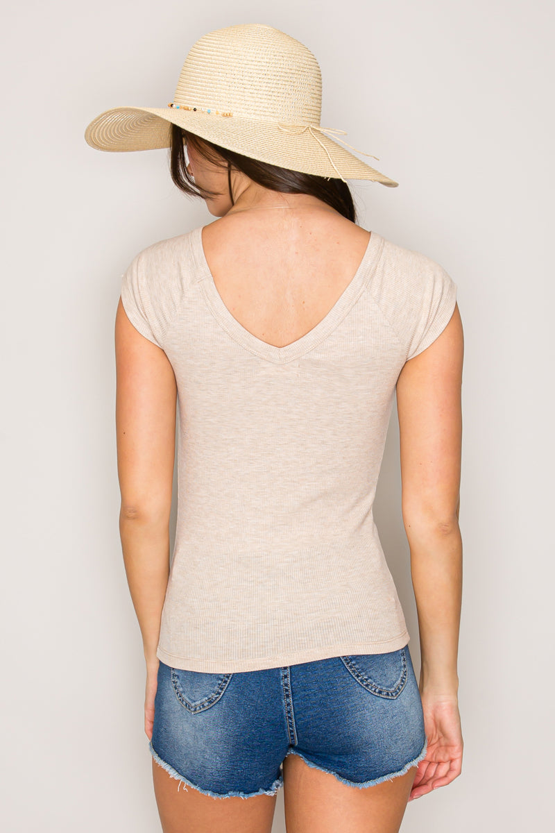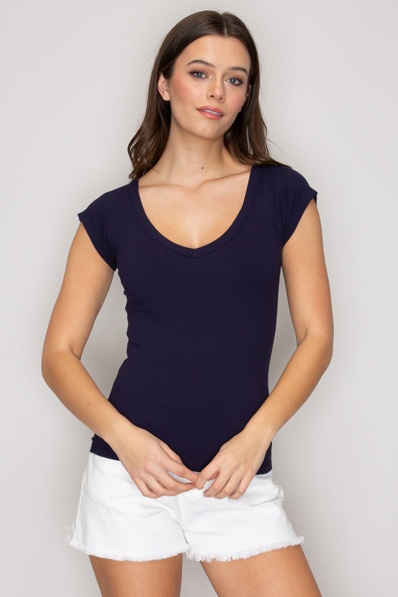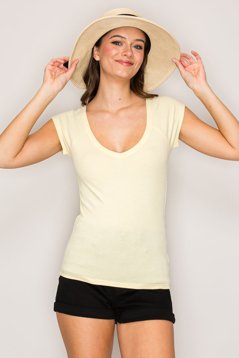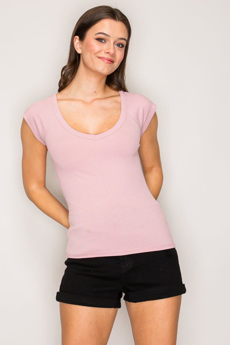 TY71138 | Cap Sleeve Wide V-Neck Top