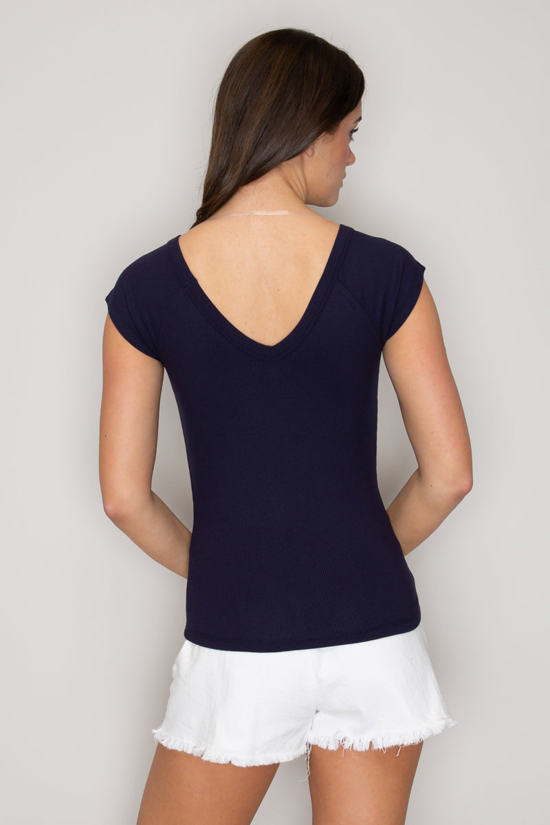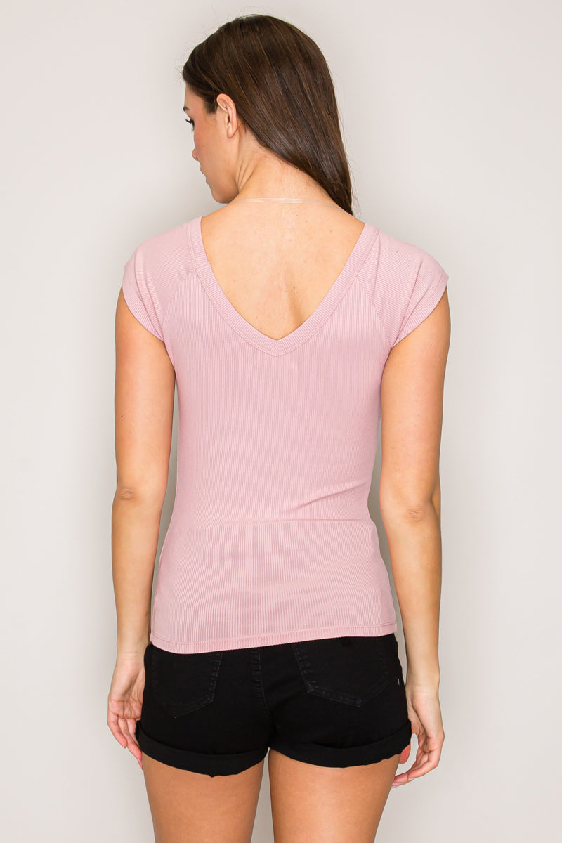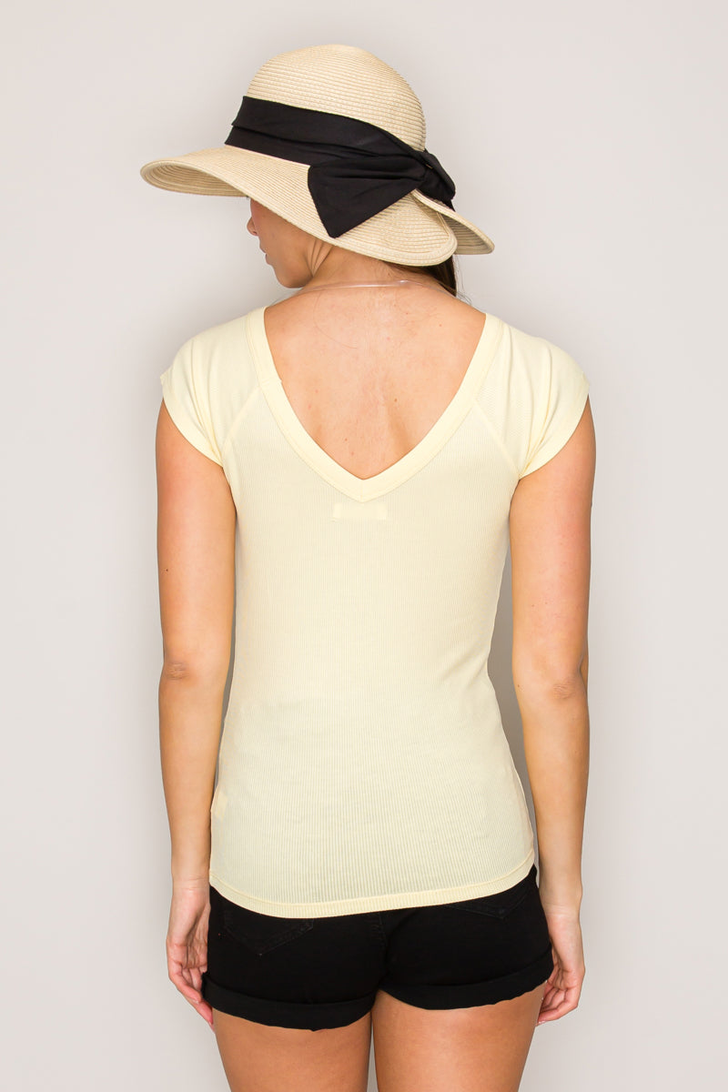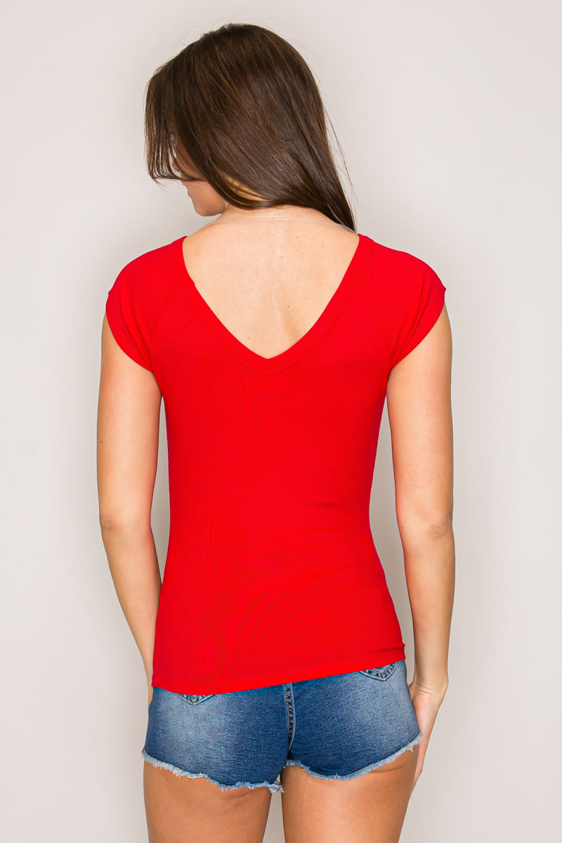 Cap Sleeve Wide V-Neck Top