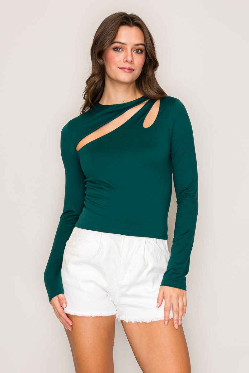 TZ80759 | Cut Out Double Layer Long Sleeve Top