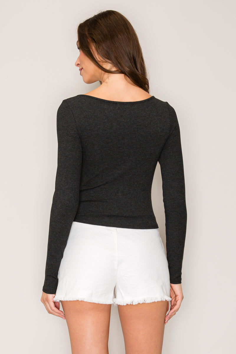 TZ9520 | Ribbed Boat Neck Button Down Long Sleeve Top