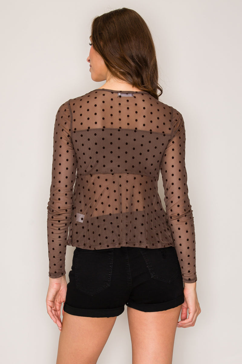TZ9640 | Polkadot Mesh Flyaway Long Sleeve Top